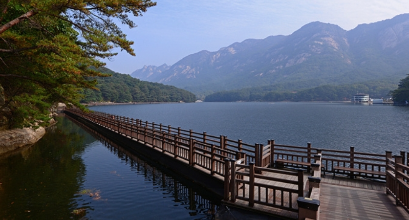 맑고 투명한 호수는 마치 거울처럼 주변의 푸른 숲을 비추며, 잔잔한 물결은 평화로운 분위기를 자아냅니다. 걷기 편한 데크길로 조성되어 있어 남녀노소 누구나 부담 없이 산책을 즐길 수 있습니다.