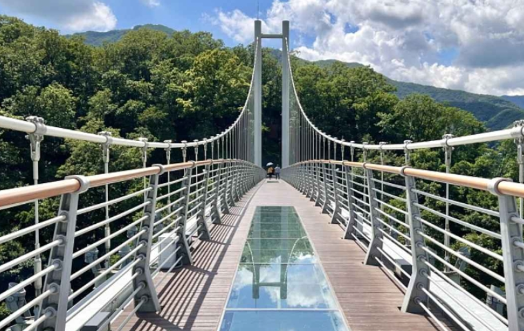 투명한 강화유리 바닥을 통해 아래를 내려다보는 스릴은 덤! 흔들다리를 건너며 느끼는 짜릿함은 잊지 못할 추억을 선사합니다.