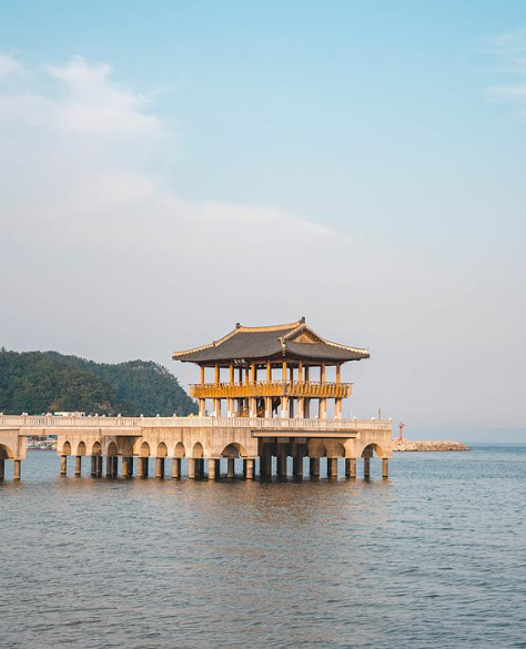 포항 영일대전망대는 포항시 북구 두호동에 위치한 해상 누각으로, 영일대 해수욕장 앞바다에 자리 잡고 있습니다.
