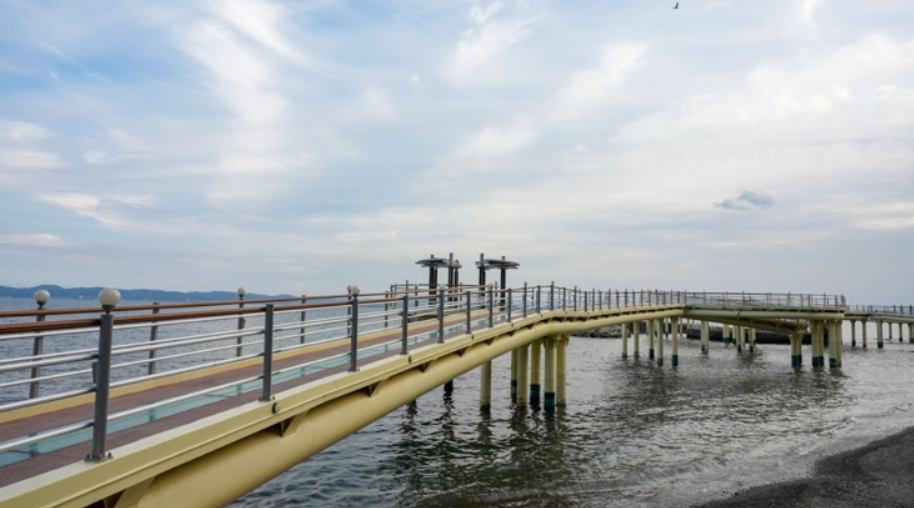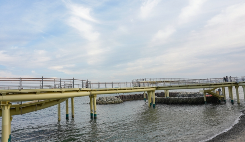 해상스카이워크는 바다 위를 걷는 듯한 스릴을 느낄 수 있으며, 특히 중앙부에는 투명한 강화유리 바닥 구간이 있어 아찔함을 더합니다.
