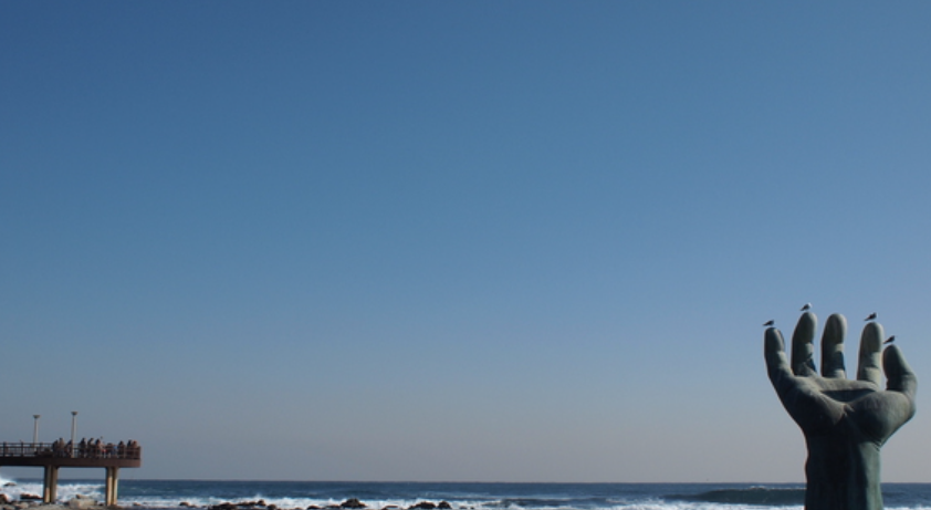 호미곶 해맞이광장의 상징적인 조형물인 '상생의 손'은 바다와 육지에 각각 설치되어 있으며, 새천년을 맞아 모든 국민이 서로 도우며 살자는 의미를 담고 있습니다.