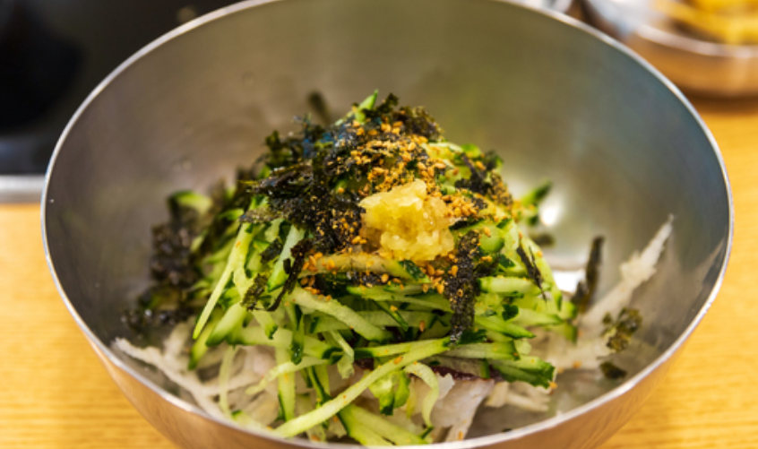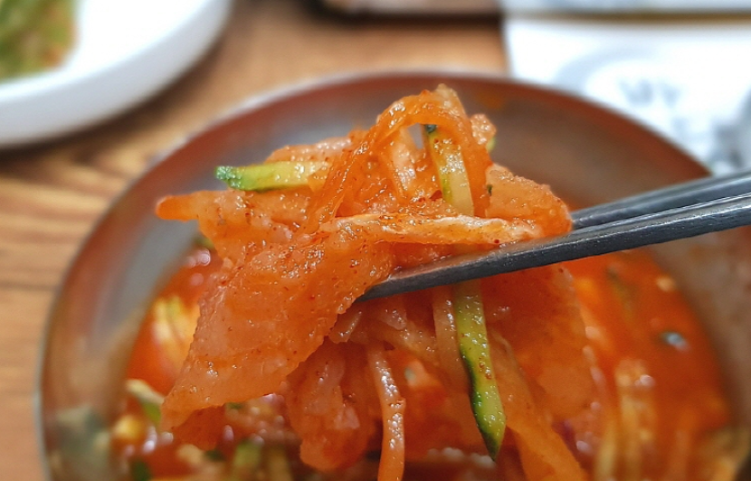 이곳의 대표 메뉴는 바로 살얼음이 떠 있는 매콤한 고추장 양념에 신선한 회와 아삭한 야채를 듬뿍 넣어 비벼 먹는 '물회 국수'입니다. 쫄깃한 국수사리까지 더해지면 그 맛은 정말 말로 표현할 수 없을 정도입니다.
