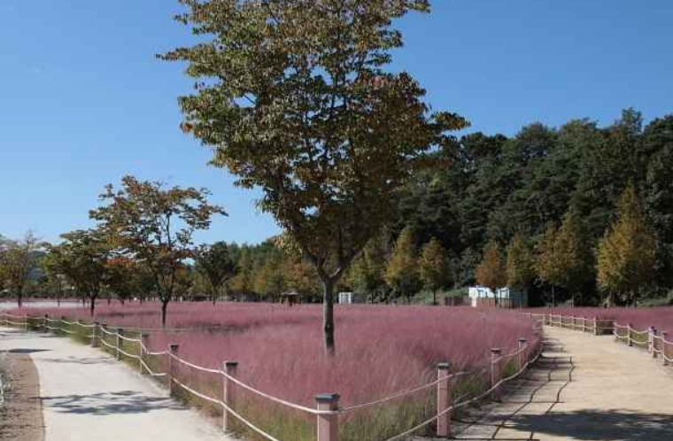 가을이면 잔디밭 한편에 핑크뮬리가 만개하여 아름다운 분홍빛 물결을 선사합니다. 탁 트인 공간에서 여유롭게 핑크뮬리를 감상하고 싶다면 신소양체육공원을 추천합니다.