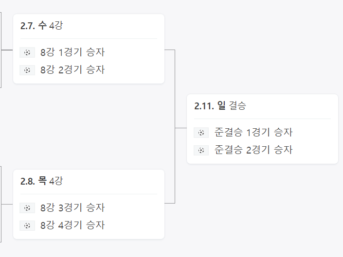 이후 2월3일이나 4일날 다른 조의 진출자와 경기를 치르게 됩니다. 이후의 주요일정은 다음과 같습니다.