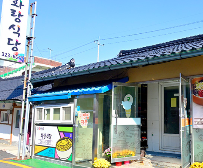 화랑식당에서는 고소한 참기름을 얹은 육회와 옛날 함평에서 먹던 방식 그대로 돼지비계 한두 젓가락을 넣어 먹는 육회비빔밥을 맛볼 수 있습니다.