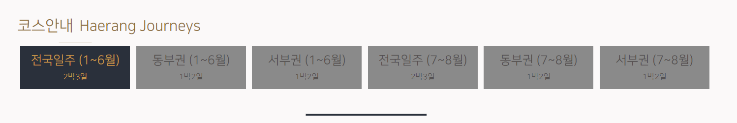 화요일 출발 2박 3일 전국일주 코스와 토요일 출발 1박 2일 동부권, 서부권 코스로 나뉘어 운행됩니다. 스페셜코스와 단체 맞춤형 코스도 가능합니다.