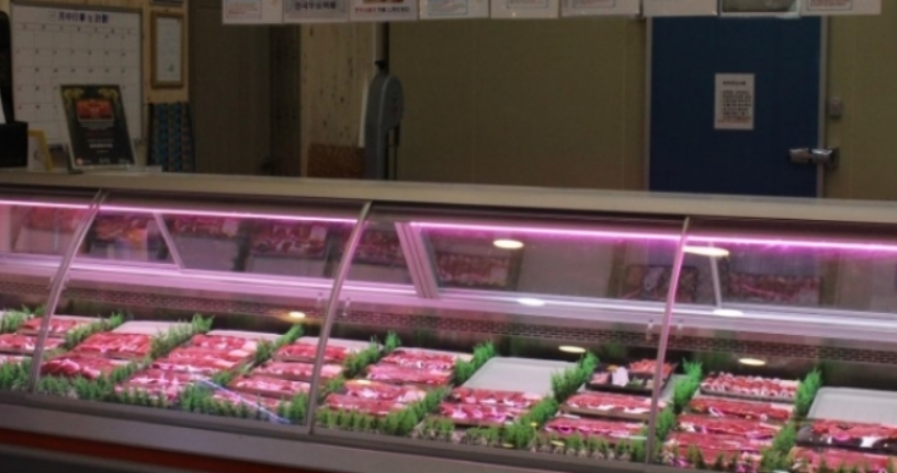 넓고 쾌적한 식당 내부에 들어서면 가장 먼저 눈에 띄는 것은 바로 다양한 한우 부위를 진열해 놓은 정육 매장입니다.