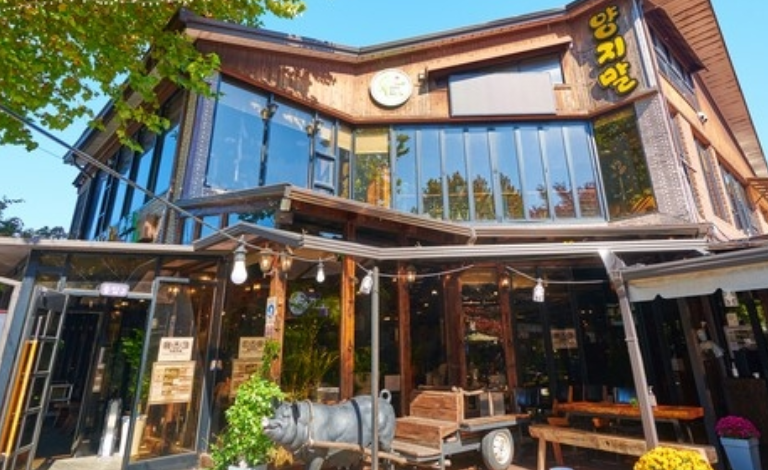 식사 후에는 고소하고 꾸덕한 맛의 메밀 커피를 마시며 아름답게 꾸며진 정원을 산책하는 것도 좋습니다. 양지말 화로구이에서 맛있는 화로구이를 즐겨보세요. 주소: 강원특별자치도 홍천군 홍천읍 하오안리 1014