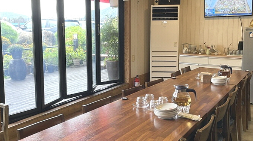 넓은 매장과 통창으로 보이는 바깥 풍경은 식사를 더욱 즐겁게 만들어줍니다. 입식과 좌식 테이블이 모두 마련되어 있어 편안하게 식사를 즐길 수 있습니다.