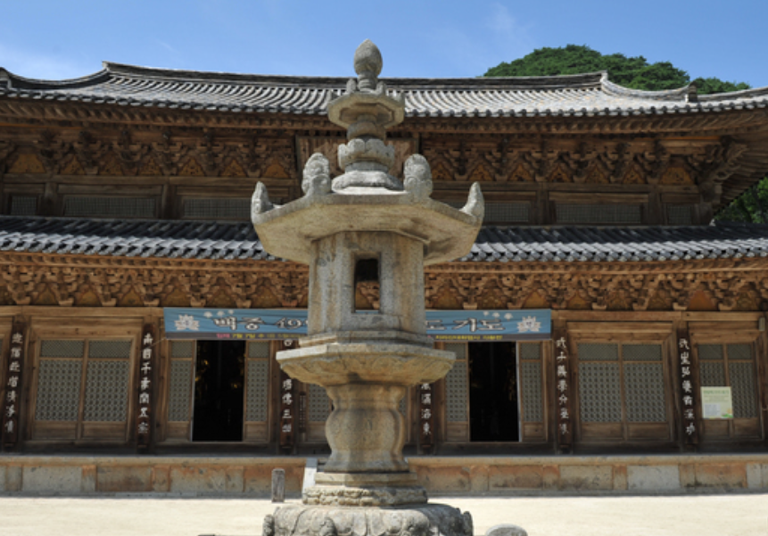 앞에 있는 석등 또한 조각 예술의 절정을 보여주며 국보로 지정되어 있습니다. 내부에는 국보로 지정된 영산회 괘불탱등이 있습니다.