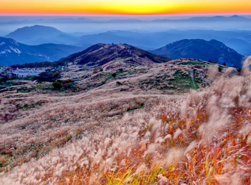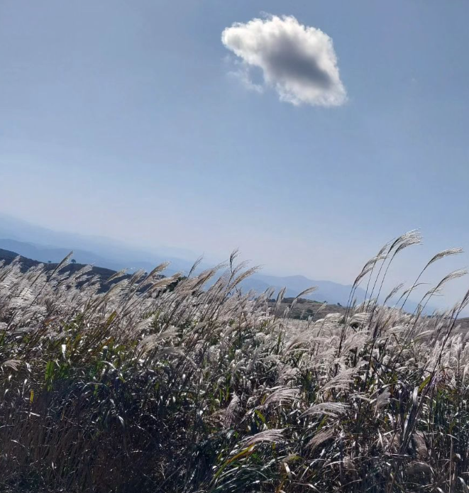 황매평원 억새는 대규모 군락지를 이루고 있어서 관람하기에 상당히 명소로서 손꼽히는 곳입니다. 특히 파도가 치는 듯한 느낌의 은빛 가득한 억새는 그야말로 장관을 이룬다는 감상 평가입니다.