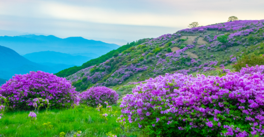 특히 5월에는 철쭉꽃이 평원에 피어 아름다운 선홍의 색감을 연출하여 많은 이들의 탄성을 자아냅니다.