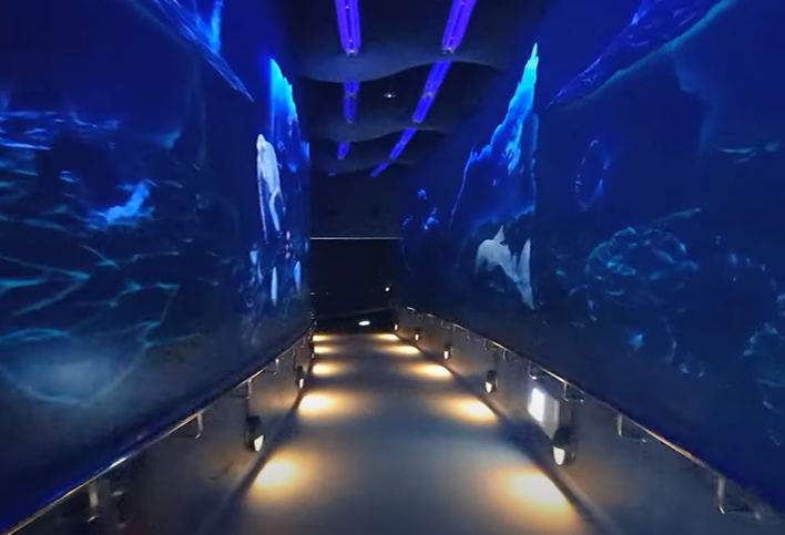 규슈 남부 바다를 재현한 모습의 테마 수조는 상어와 가오리등 다양한 물고기들도 보기에 좋습니다.