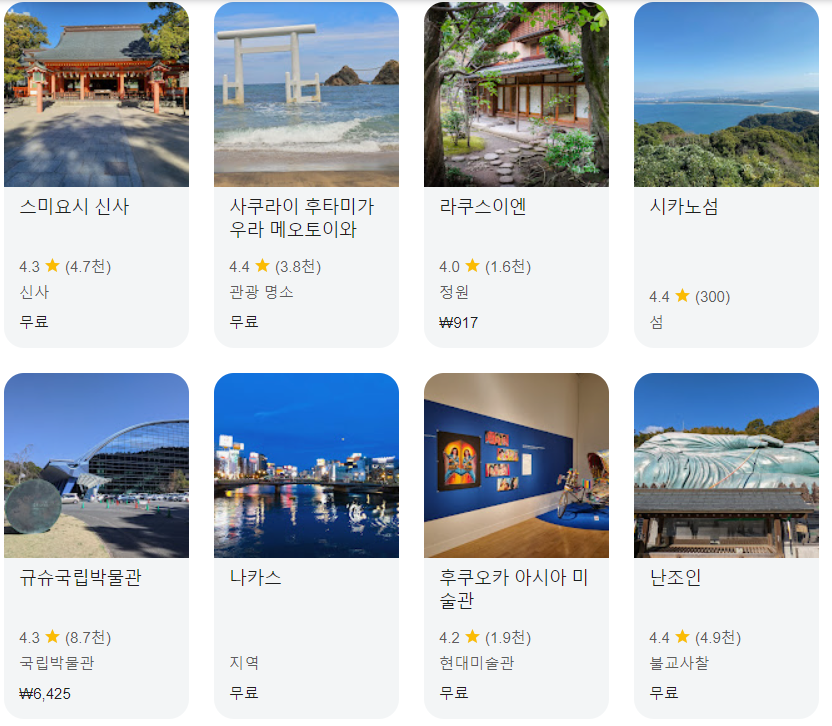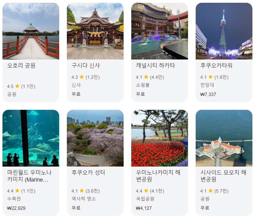 이처럼 후쿠오카는 역사적인 명소부터 현대적인 쇼핑 시설, 아름다운 자연 공원까지 다양한 매력을 갖춘 도시입니다. 풍부한 관광 자원과 편리한 교통, 맛있는 음식이 어우러져 여행자들에게 잊지 못할 경험을 선사합니다.