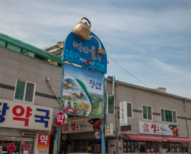 스카이워크를 지나면 정선 아리랑 시장으로 이동할 수 있는데, 이 시장은 강원도 지역 특산물과 전통적인 음식들이 가득해요.