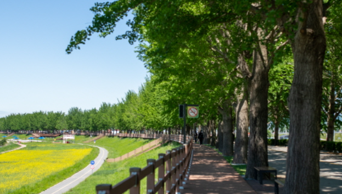 10월이면 노랗게 물든 은행잎들이 햇빛에 반짝이며 마치 동화 속 세상에 온 듯한 착각을 불러일으킵니다. 은행나무길을 따라 여유롭게 산책하거나 자전거를 타며 가을의 정취를 만끽해 보세요. 특히 연인과 함께 걷는다면 더욱 로맨틱한 추억을 만들 수 있습니다.
