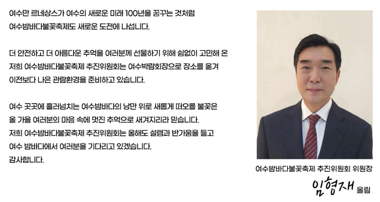 매년 이곳을 찾는 사람들은 여수의 밤바다와 함께 펼쳐지는 환상적인 불꽃쇼를 보며 그 아름다움에 감탄하고, 다시 찾고 싶은 여행지로 여수를 기억하게 됩니다.