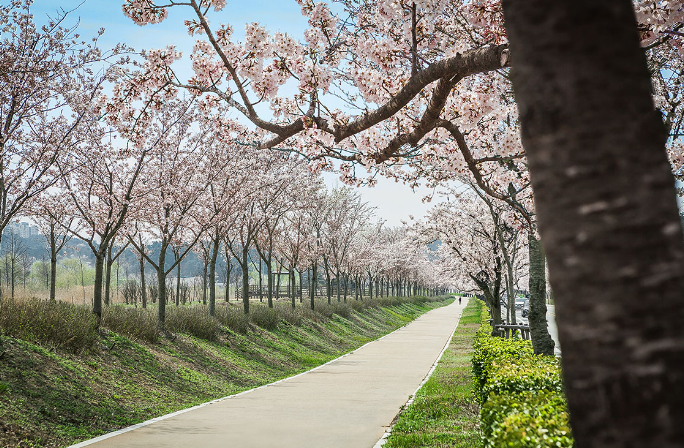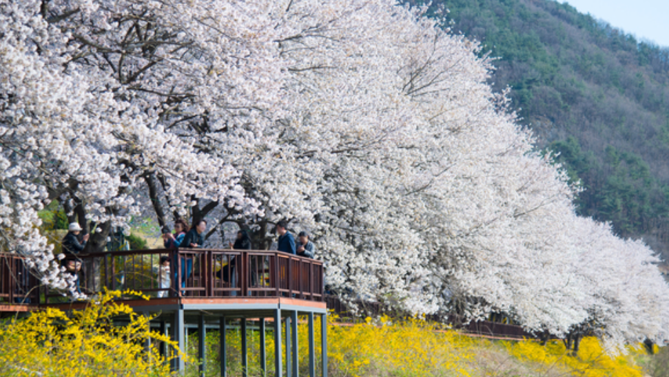 약 4km 구간에 피는 2,000여 그루의 벚꽃을 감상하실수 이씅며 하얀 벚꽃과 봄꽃들이 아름답게 조화를 이루어 연인이나 가족분들이 방문하여 사진등을 촬영하고 추억을남기기에 좋습니다.