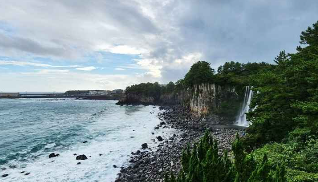 일반적인 폭포와 달리 바다와 맞닿아 있어 더욱 드라마틱한 풍경을 연출하며, 파도와 폭포 소리가 함께 어우러져 감각적인 자연의 향연을 느낄 수 있습니다.