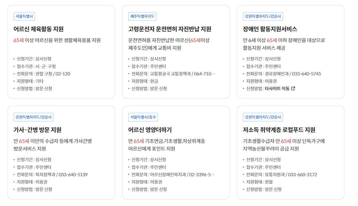 생각보다 65세 이상이 되면 받을 수 있는 혜택이 많고 다양하게 준비되어 있습니다. 정부24 홈페이지에서 보조금 24를 보시면 보다 더 다양한 혜택을 찾아보실 수 있습니다. 중앙정부 차원의 지원도 있고 각 지역별 지원도 확인해 보실 수 있습니다. 이것으로 모든 포스팅을 마치도록 하겠습니다. 감사합니다.